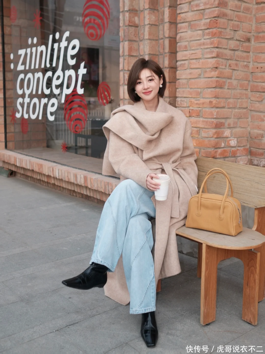 比如,一款燕麦色的长款大衣,就兼具了时尚与实用性。腰带的设计增添了一份减龄的属性,让整款服饰看起来更加年轻有活力。同时,大衣的轮廓稍宽,能够轻松地容纳各种厚实的内搭单品,让你在冬日里也能保持温暖与舒适。