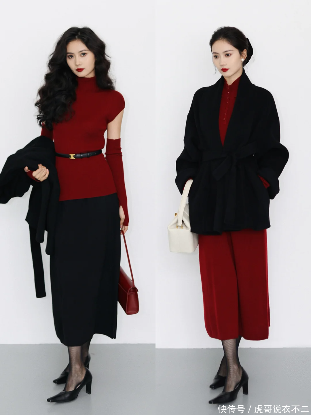 此外,红色单品还可以作为内搭来穿着,以降低驾驭难度。一件酒红色的羊绒衫,柔软而温暖,作为贴身穿着的服装,既能展现女性的柔美与优雅,又能增添一份高级感。无论是搭配牛仔裤还是半身裙,都能轻松打造出既舒适又时尚的造型。